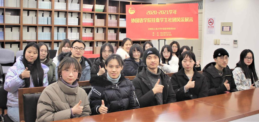 1月10日18:30,外国语学院2020-2021学年学生社团风采展示活动于宝山校区C512顺利举办。学院团委书记梁苗、英语协会、日本语同好会、“一缕阳光”慈善义工队、湖畔诗社、英语演讲与辩论社等挂靠社团负责人以及团委学生会骨干共同参加本次活动。活动由学生会社团部部长刘莹莹主持。