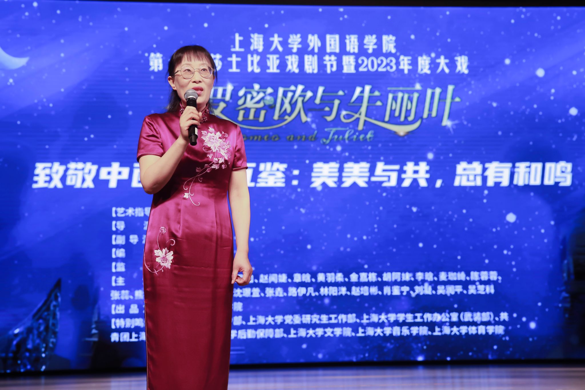 外国语学院的年度大戏自2007年开演至今,已经走过了十六个年头。十六年间,在学校的关心和全校师生的见证下,它从一个学院文化活动发展成为校级平台支持下的日趋成熟、内涵丰富的校园文化品牌项目,并在2022年代表上海大学在“全国首届大学生英语戏剧大赛”中荣获二等奖和最佳导演奖。莎士比亚戏剧具有永恒的思想价值和艺术价值,为彰显人文精神,促进国际文化的融汇与交流,上海大学外国语学院举办“莎士比亚戏剧节”,通过外语短剧配音大赛、外文电影配音大赛、莎士比亚文学系列讲座等一系列活动培养了外语专业学生对语言的运用能力,激发了全校学生对外语学习的兴趣和了解国外的多元文化的窗口;莎士比亚年度大戏为全校师生带来了一幕幕精彩的演出,观众们在欣赏莎翁经典作品的同时,切身感受莎翁所留下的传世经典的魅力。接下来,外国语学院也将在坚持致敬莎翁经典剧作、感受戏剧独特魅力的同时,进一步融汇国际文化,深化文明交流互鉴,以文明交流超越文明隔阂、文明互鉴超越文明冲突,推动中华文化更好走向全世界。