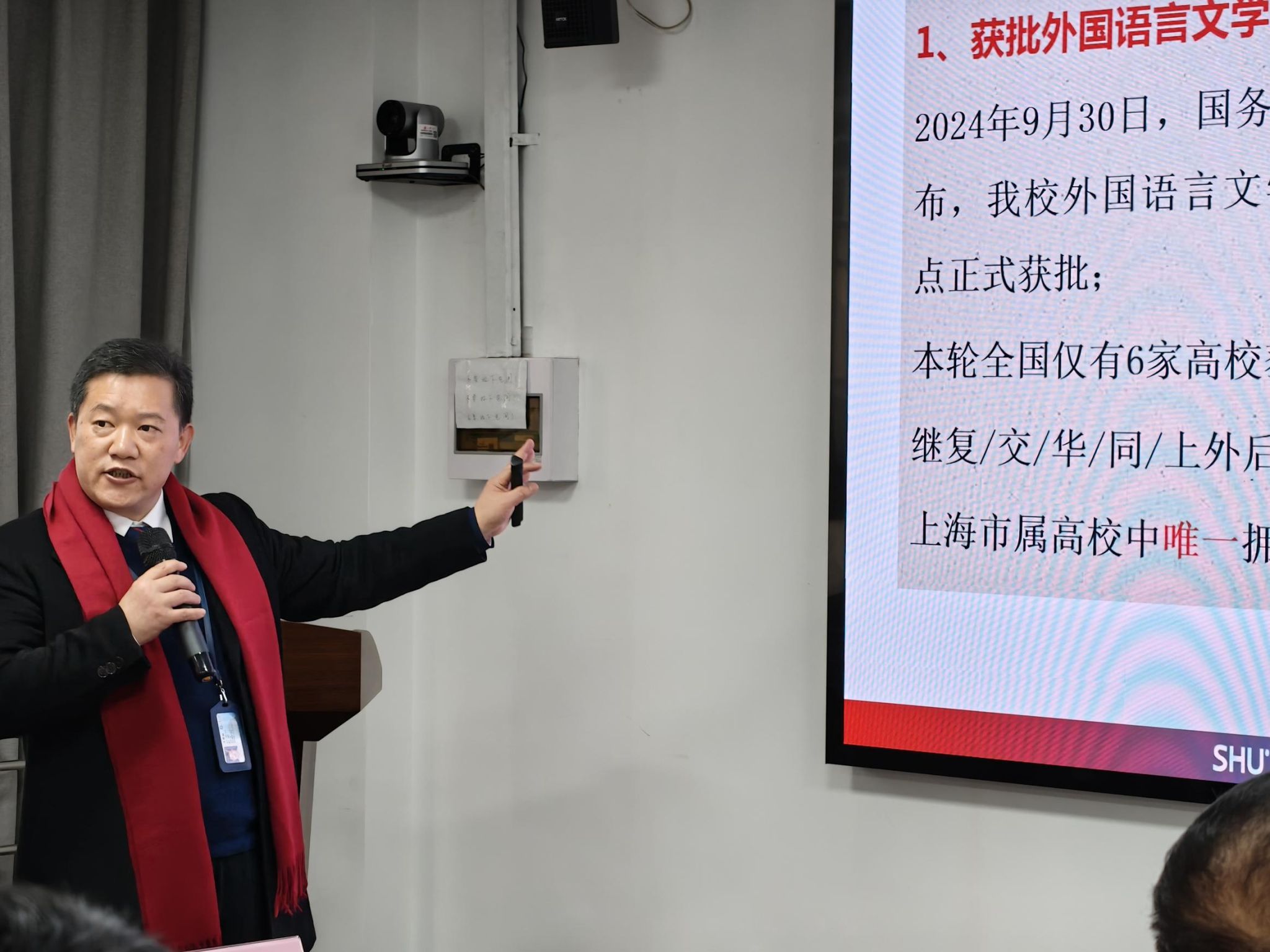 上海大学校友会外国语学院校友分会第三届理事会第三次会议于1月3日在宝山校区C506顺利举办。外国语学院党委书记、校友分会会长吴蔚,学院党委副书记、院长、校友分会副会长尚新,上海久柏易游信息科技有限公司(900游平台)创始人、副会长高宏久,学院党委副书记、副院长、校友分会秘书长贾小琴,学院历任老领导谢之君、周平、施雯、邓志勇、曾桂娥、王国建、陈秀猛,以及金志宏、刘千诚、俞建村、郁士明、张华、陈丽等近20位校友理事代表、学院党政班子成员及师生代表出席会议。本次会议旨在总结汇报2024年学院工作成效,共同商讨并展望2025年学院发展规划。
