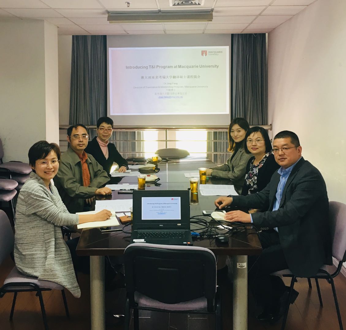 4月17日,麦考瑞大学负责翻译硕士专业中国市场的方静博士及其助理访问我院,主持工作副院长邓志勇教授、副院长苗福光教授、朱巧莲副教授、国际部周梁老师进行了接待并参与会谈,双方就翻译专业办成双学位项目进行了深入探讨。