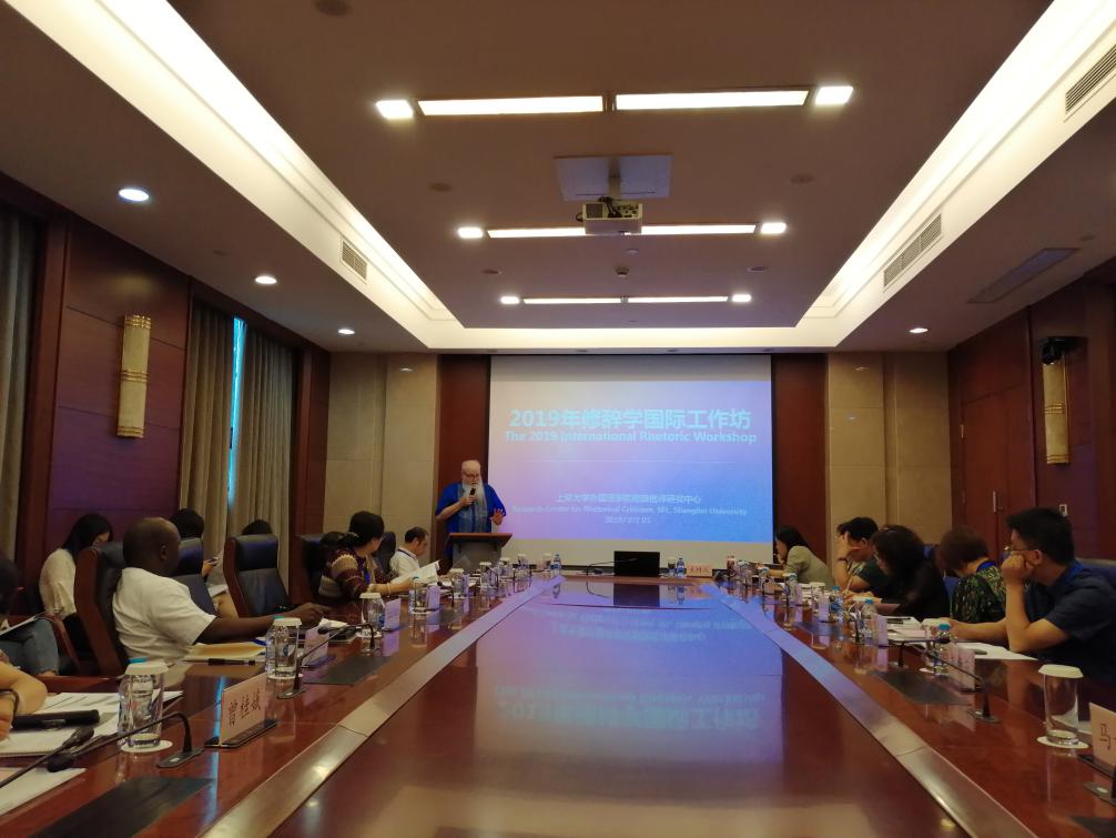 7月1日,由上海大学外国语学院修辞批评研究中心主办的“2019修辞学国际工作坊”在乐乎新楼成功举办,本次会议由上海大学外国语学院主持工作副院长邓志勇教授主持。美国著名修辞学家、德克萨斯大学传播学系主任Barry Brummett教授应邀作了题为“人类命运共同体的修辞学基础是什么”和“藏于眼前:关于修辞学困境的几点想法”的主旨报告。