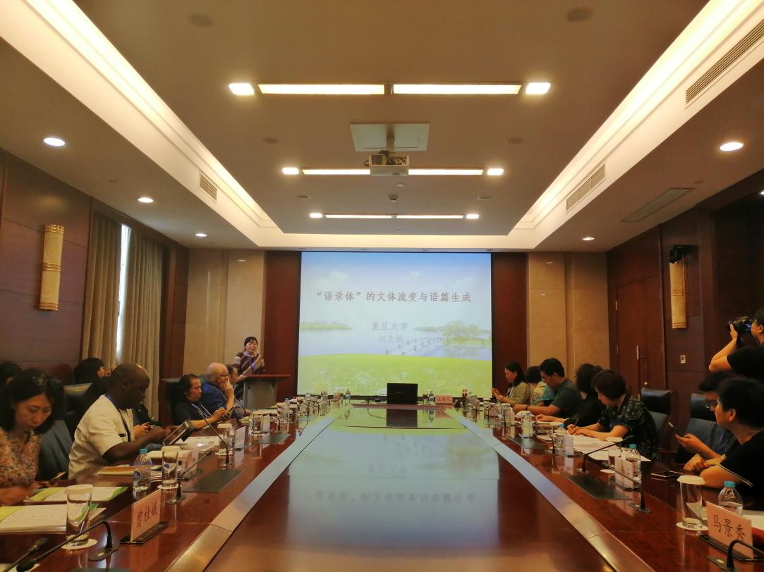 7月1日,由上海大学外国语学院修辞批评中心举办的2019年上海大学修辞学国际工作坊在乐乎新楼顺利进行。复旦大学中文系博士生导师,中国修辞学会副会长祝克懿教授发表了名为“‘语录体’的文体流变与语篇生成”的主旨演讲。本次主旨演讲由曲阜师范大学卢卫中教授主持。