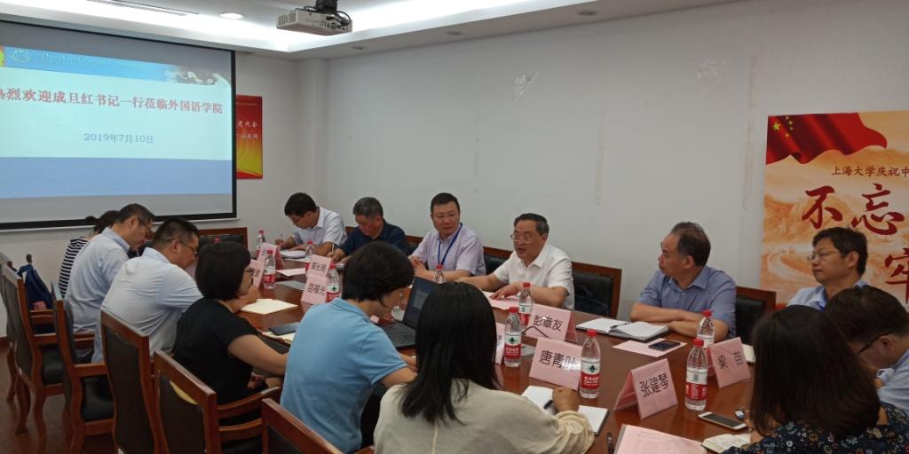 7月10日下午,校党委书记成旦红到外国语学院调研,副校长汪小帆、教务处处长彭章友、研究生院常务副院长郭长刚、人事处副处长晋兴雨、党政办副主任凌长臣、外国语学院党委主持工作副书记曾桂娥、党委副书记贾小琴、副院长苗福光、工会主席张建琴、系主任、教师和辅导员代表等同志参加了本次座谈会。