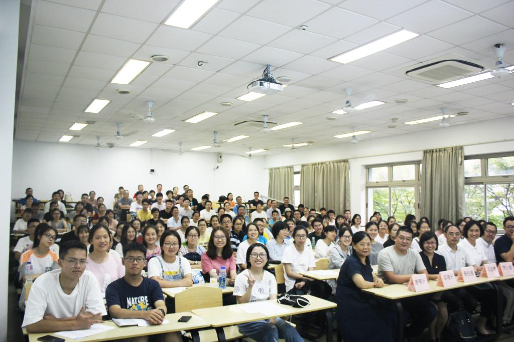 8月27日下午15:30,外国语学院2019级新生及新生家长欢迎会在AJ103隆重举行。出席本次会议的有外国语学院党委主持工作副书记曾桂娥教授、学院主持工作副院长邓志勇教授、副院长苗福光教授、党委副书记贾小琴老师、英语系主任唐青叶教授和日语系主任赵莹波教授。本次活动由2019级新生辅导员梁苗老师主持,2019级80位新生及部分家长准时到场参加了本次欢迎会。
