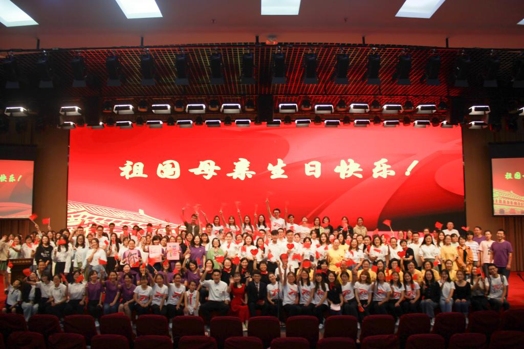 最后,由李逸辰、赵小莹、吴迪三位同学领唱,全场师生共同合唱了《我和我的祖国》,将本场联欢会推向高潮。