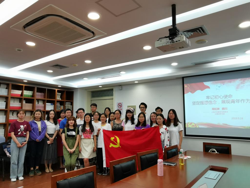 9月18日下午,2018级学术型硕士研究生党支部在校本部C512会议室召开主题党日活动。此次活动特别邀请上海大学青年马克思主义理论研习会的周虹琳以及颜川同学给大家进行题为“牢记初心使命,坚定理想信念,展现青年作为”的演讲。2018级学术型硕士研究生党支部和社会科学学部党支部的党员们共同参加了此次组织生活,本次组织生活由外国语学院研究生党总支副书记袁媛主持。