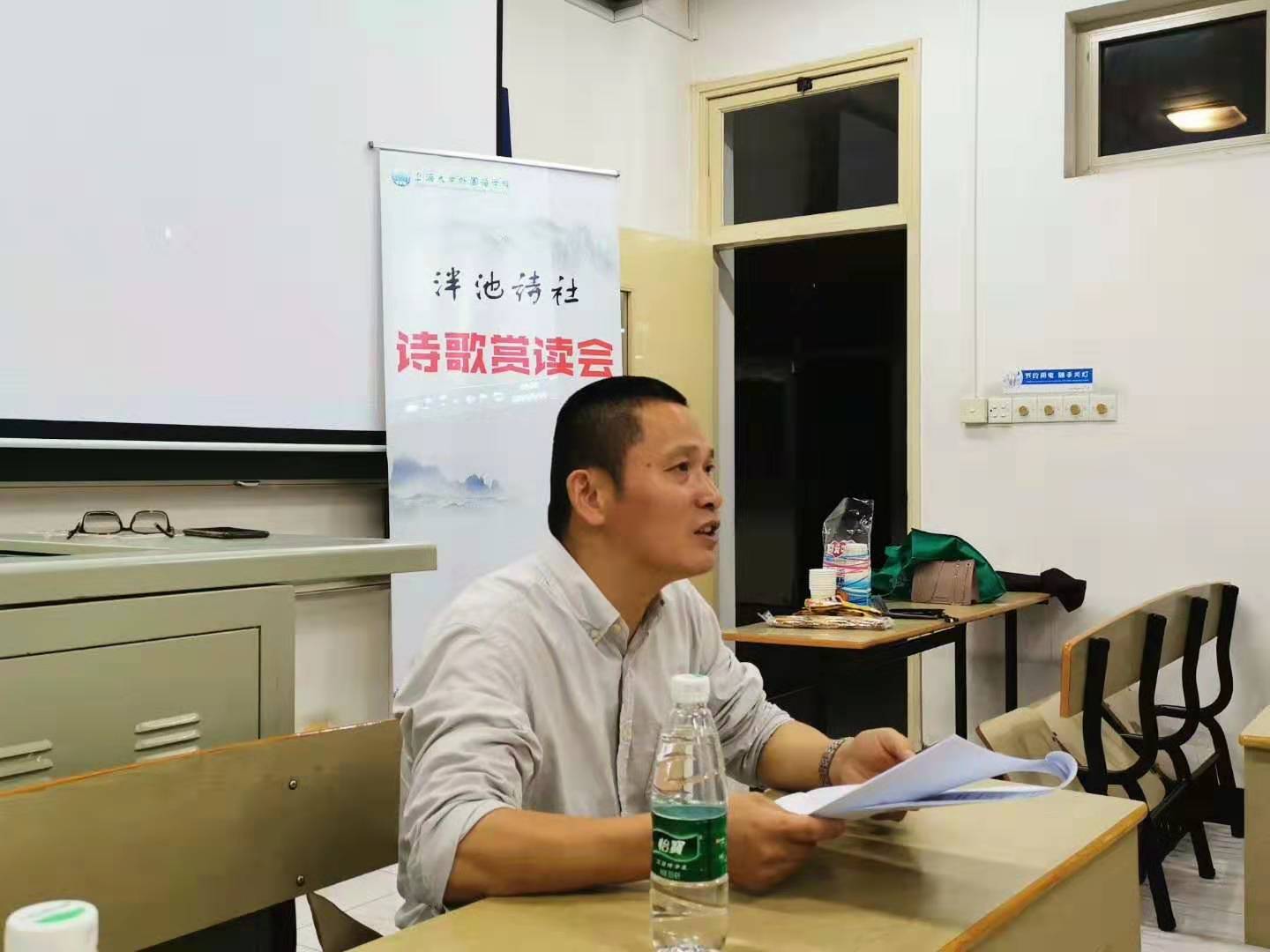10月10日晚,湖畔诗社第三次分享会在C512顺利进行。英语系唐根金老师和来自外国语学院、计算机学院、国际教育学院的近30名本科生、研究生同学来到现场,激扬文字、切磋点评。
