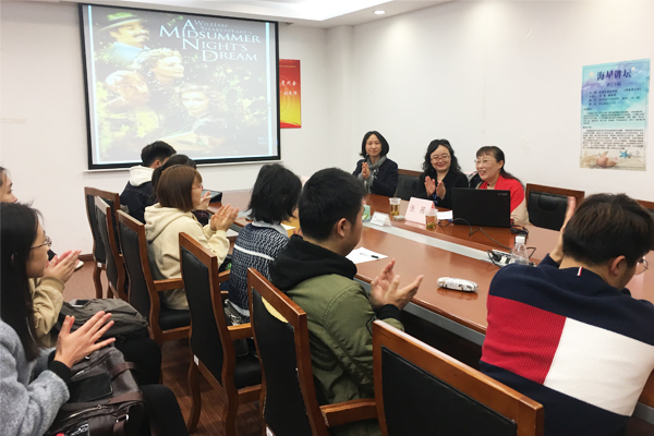 经过张老师的讲解和分析,在场师生对《仲夏夜之梦》这一莎翁经典的理解更加清晰和深入。上海理工大学的老师和同学们即将展演《仲夏夜之梦》,对于这一次交流会表示很受启发,对我院的邀请表示感谢并就如何更好地开展校际戏剧文学互动进行了探讨。本次指导交流会在和谐愉快的氛围中落下帷幕。