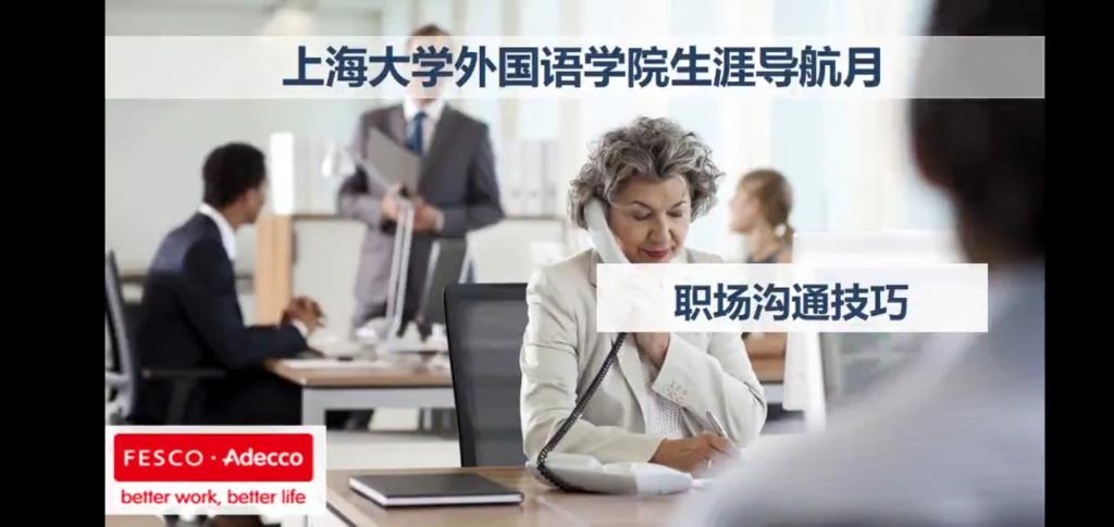 为帮助学生提前了解职场沟通技巧,更好地应对线上面试和适应将来的职场生活,5月8日12:00,外国语学院“战‘疫’,我们在一起”空中德育课堂第八讲暨生涯导航月之职场沟通技巧培训以直播形式顺利开讲。本次课堂主讲嘉宾是来自FESCO Adecco(外企德科)优秀人力资源管理专家的葛梦洁女士。我院共计250名学生参与了本次学习活动。