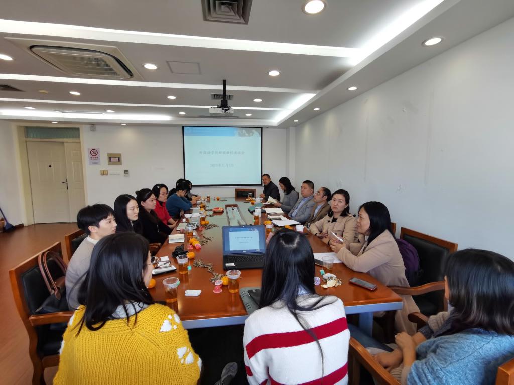 2020年11月3日下午,外国语学院新进教师座谈会在C512会议室举行。学院党委书记邓志勇、党委副书记贾小琴、副院长戴朝晖、两系主任、工会主席、青联会会长、人事干事以及9位新进教师共同出席了本次会议。会议由院工会主席张建琴主持。