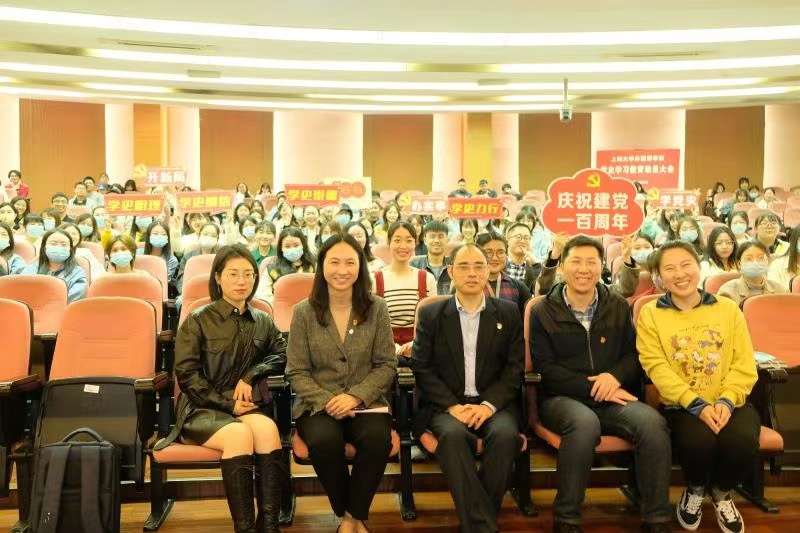 上海大学外国语学院全体师生将秉承“学党史、悟思想、办实事、开新局”的思想,从党的百年奋斗历程中把握历史规律、汲取真理力量,以昂扬姿态奋力开启全面建设社会主义现代化国家新征程,以实际行动和优异成绩庆祝建党100周年!(来露芳 供稿)