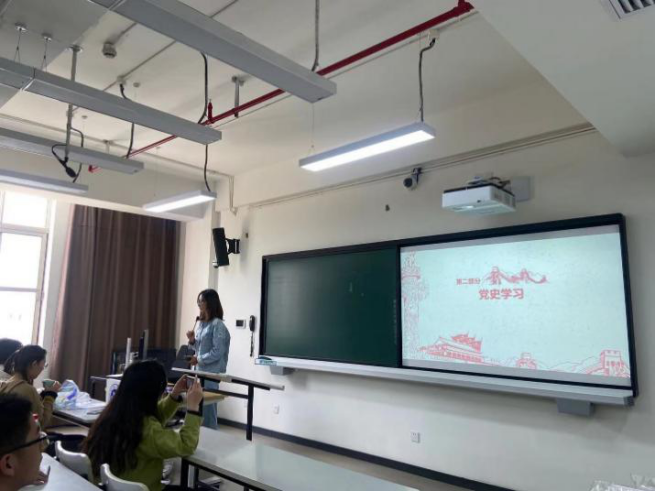 在“党史学习教育”部分,英语系团支书毛艺凝向同学们介绍了中国共产党建党至今经历的一系列抗争。理论学习之后,同学们一起观看了中国共产党艰苦奋斗的相关视频。学习完党的历史,同学们更加体会到幸福生活的来之不易,更加清楚的了解到党全心全意为人民服务的信念,更坚定了实现中华民族伟大复兴的信心和责任。