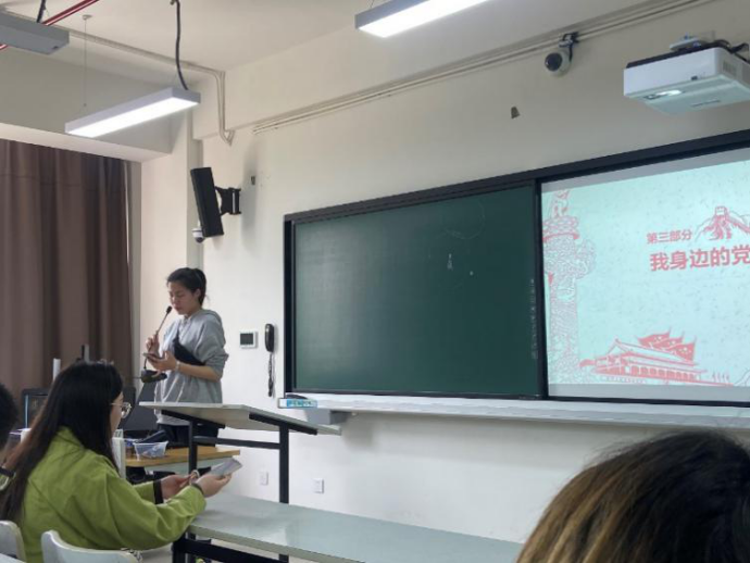 4月16日13时,外国语学院20级全体学生在D211开展了“知党、爱党、敬党,不忘初心跟党走”的主题团日活动。本次活动共分为四个部分,分别是入团申请表决、党史学习教育、我身边的党员故事、党史知识竞答。