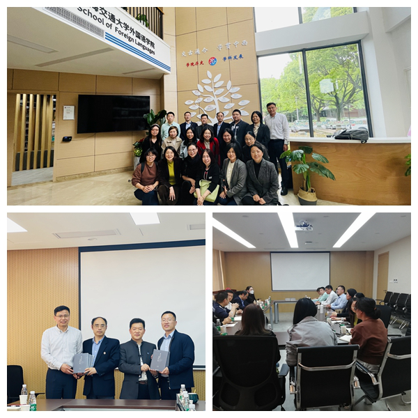 4月25日下午,由院长尚新亲自带队,学院领导班子成员及英语、日语以及法语系主任一行14人前往上海交通大学调研“一流本科申报”、“大学英语校本测试”、“一流本科课程建设”等方面的工作,与上海交通大学外国语学院党政领导班子成员及相关部门负责人开展座谈交流。