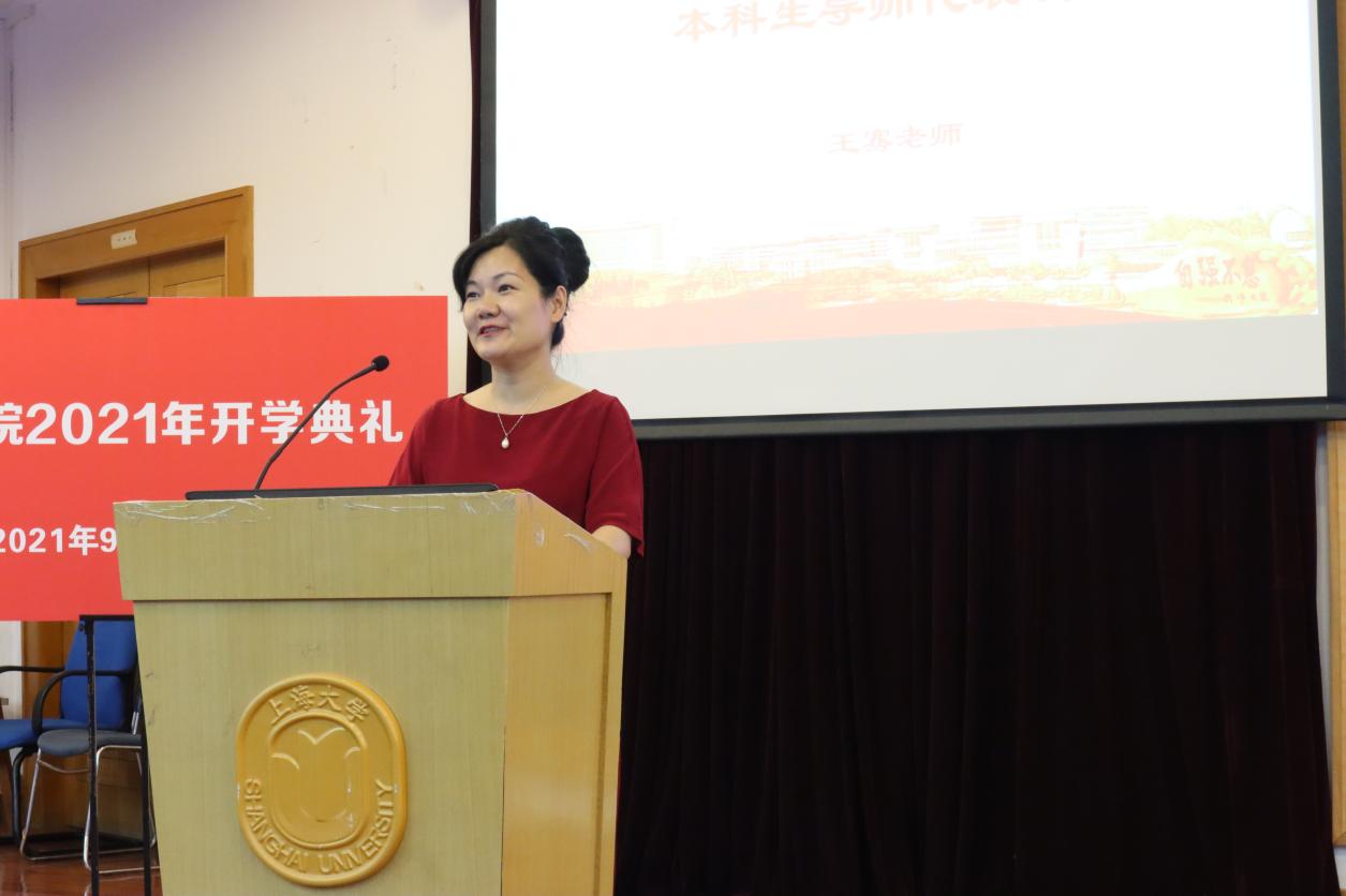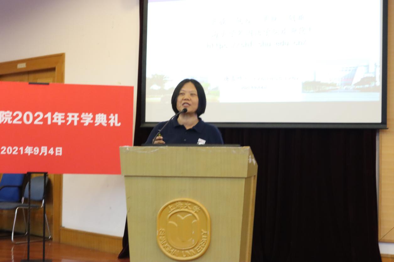 随后,副院长戴朝晖副教授和唐青叶教授分别就学院本科生与研究生的人才培养情况做了详细介绍。两位老师表示,作为外语人,应将自己的专业优势与上大这所综合类院校的办学理念结合起来,在发展自身的同时投身于民族复兴的伟大事业中。此外,戴老师还特别介绍了曾经任教上大的著名翻译家陈望道先生,分享其《真理的味道》的故事,以此勉励新生:生逢其时,当向前辈学习,发挥作为外语人的光与热。唐老师还鼓励同学们带着思考学习:思考学外语学什么?以后干什么?学习语言技能的同时还能学什么?