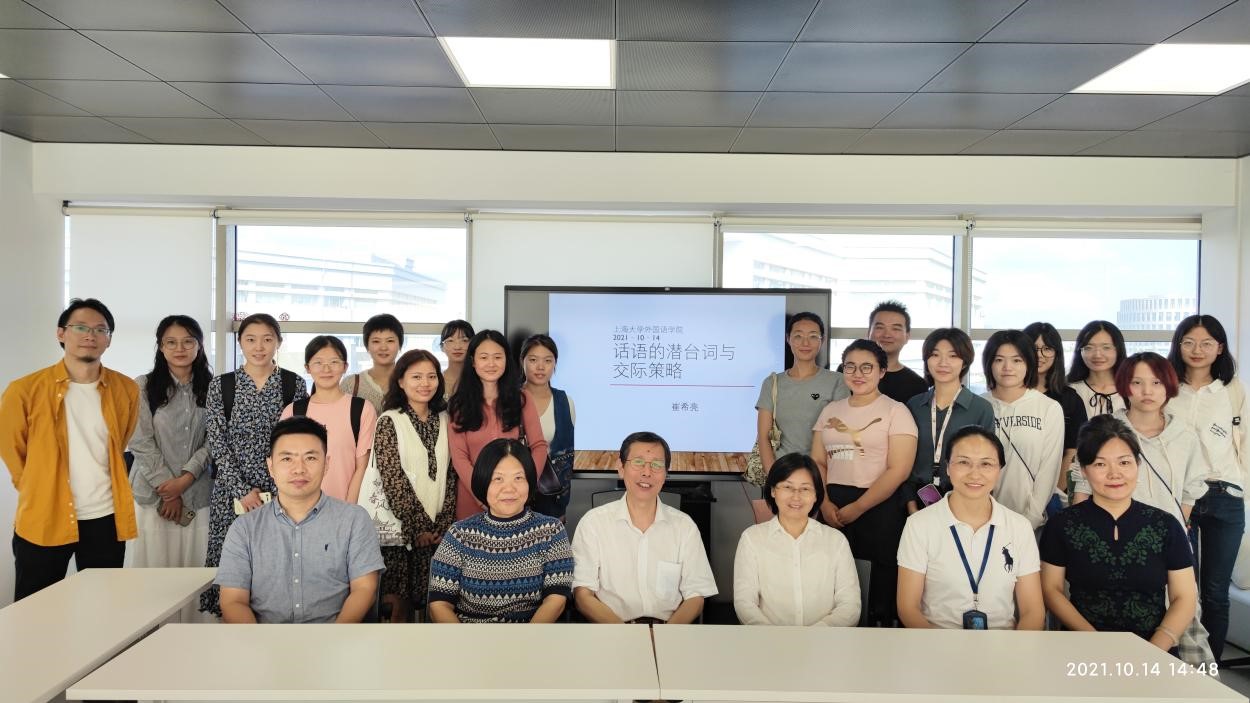 2021年10月14日下午,上海大学特聘教授、北京语言大学前校长崔希亮教授受邀来访我院,为众师生带来一场题为“话语的潜台词与交际策略”的学术讲座。讲座由外国语学院院长尚新教授主持。
