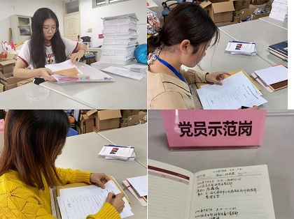 在岗期间,每名党员亮明党员身份,强化党员意识,加强党性修养,严守党员标准,以饱满的热情和认真的态度迎接每一项工作,用高能动性、高效率将事务处理得井井有条。党员示范岗的日常工作有整理新生档案材料、收集毕业生就业材料、发放获奖证书、解答来访师生疑问等,无论任务大小,党员们都能严格要求自己并高质量完成任务,切切实实以热忱的态度,勤勉的精神、实干的举措努力践行服务承诺,