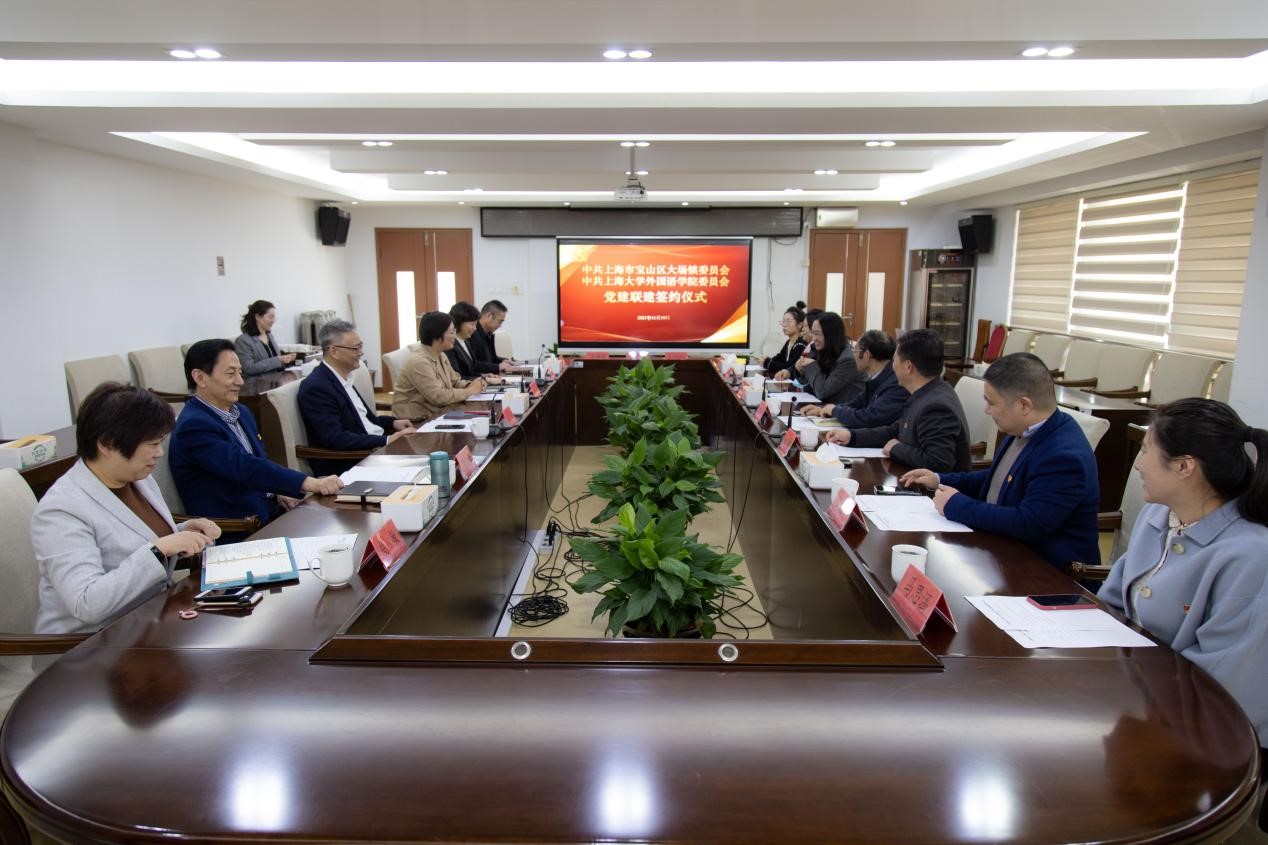为深入贯彻落实新时代党的建设总要求,进一步创新基层党建工作,发挥高校与地区联动的乘法效应,凝聚科创宝山建设发展合力,11月19日下午,外国语学院党委与大场镇党委在大场镇人民政府402会议室开展党建联建签约仪式。