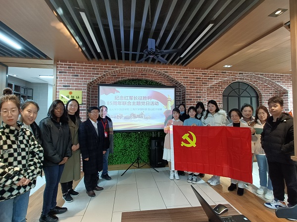 今年是中国共产党建党100周年,同时也是红军长征胜利85周年,结合党史学习教育,上海大学外国语学院党委与上海大学国际部党委于12月3日下午在前往宝山区大场镇社区党群服务中心开展了纪念红军长征胜利85周年联合主题党日活动。外国语学院党委书记邓志勇,外国语学院党委副书记、副院长贾小琴,外国语学院国学双语研究团队带头人赵彦春教授,国际部党委副书记、国际教育学院副院长陈秀猛,外国语学院国学双语研究团队雷婷老师,大场镇团委书记金斐,外国语学院团委书记马思涵,国际部团总支书记、学生支部书记肖潇,外国语学院研究生辅导员曹若兰以及外国语学院、国际教育学院学生党员代表、国际留学生代表参加了此次活动。本次活动由外国语学院研究生傅娟主持。