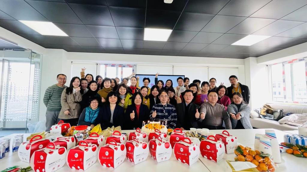 老师们唱生日歌,互道生日的祝福,欢声笑语,热闹非常。大家一边品尝到美味的蛋糕,一边畅谈即将过去的2021年的收获,展望2022年的期待。集体生日活动不仅让教师们体会到外院大家庭的温暖,还为老师们提供了交流的平台,增进同事之间的友谊,提高了团队凝聚力。