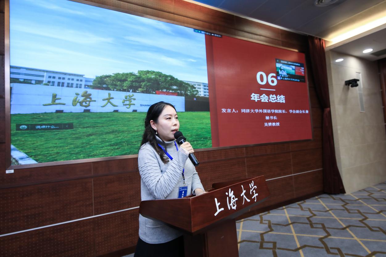 图18 上海市外文学会副会长兼秘书长、同济大学外国语学院院长吴赟教授做会议总结报告