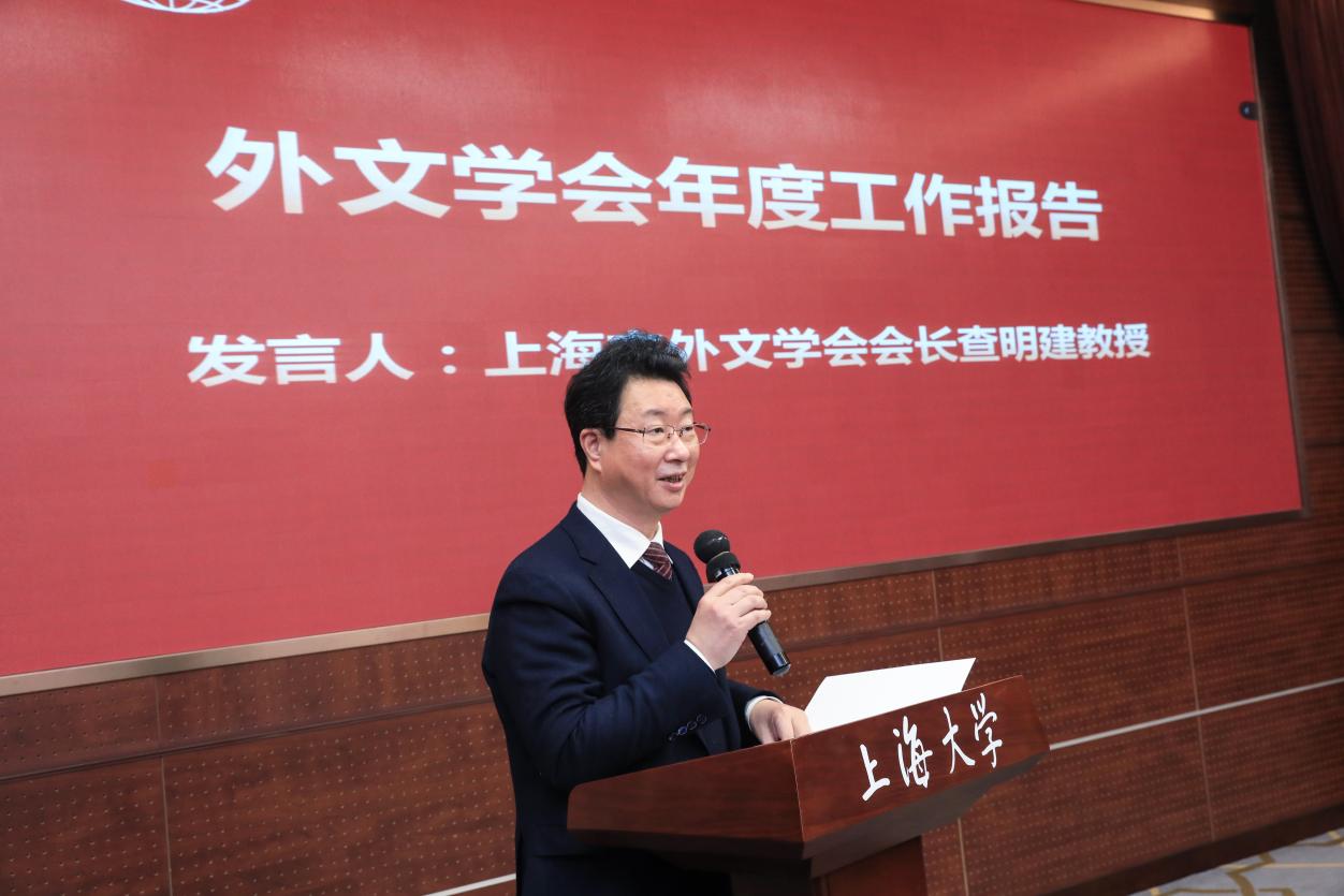 图4 上海市外文学会会长、上海外国语大学副校长查明建教授做学会年度工作报告