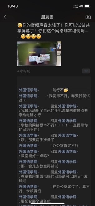 尽管隔离在校,教学仍需正常进行,但是由于场地和网络限制,给教学带来了一些不便,老师们根据自己的实操经验互相给对方出谋划策,协作解决线上授课的网络问题和麦克风问题。