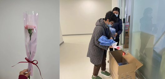 隔离的第六天适逢三八妇女节,学院工会特地为女老师们精心准备了巧克力,还有自发进行的送花活动,为大家带来一份暖暖的感动。