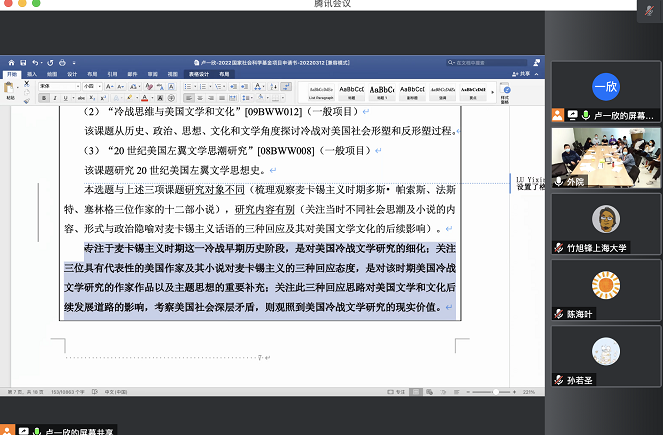 3月13日下午,外国语学院于C414室召开了2022年第四次国家社科基金项目申报辅导会。本次辅导会由副院长唐青叶主持,党委书记邓志勇、院长尚新、《上海翻译》主编傅敬民、英语系主任张新玲、日语系主任赵莹波以及尚晓进、肖福寿等多名教授出席,外国语学院的十几位教师参加本次辅导会。