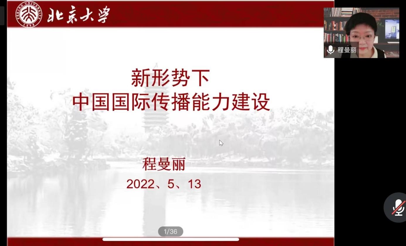5月13日13:30,外国语学院“语言文化与世界文明”系列讲座(八十八)“新形势下中国国际传播能力建设”讲座于线上顺利举行。主讲人为北京大学国家战略传播研究院院长程曼丽教授。讲座由外国语学院副院长唐青叶教授主持,校内外300多位师生参加了本次讲座。