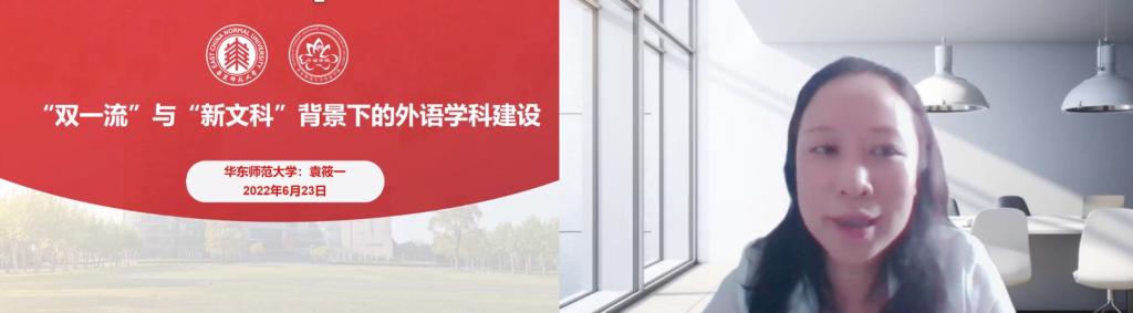 6月23日下午2点半,华东师范大学思勉人文高等研究院院长袁筱一教授应邀为我院师生开设《“双一流”与“新文科”背景下的外语学科建设:以法语语言文学教学研为例》线上讲座。本次讲座由上海大学外国语学院院长尚新教授主持,学院法语专业全体师生以及校内外共100余位师生聆听了本次讲座。