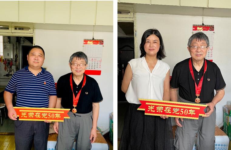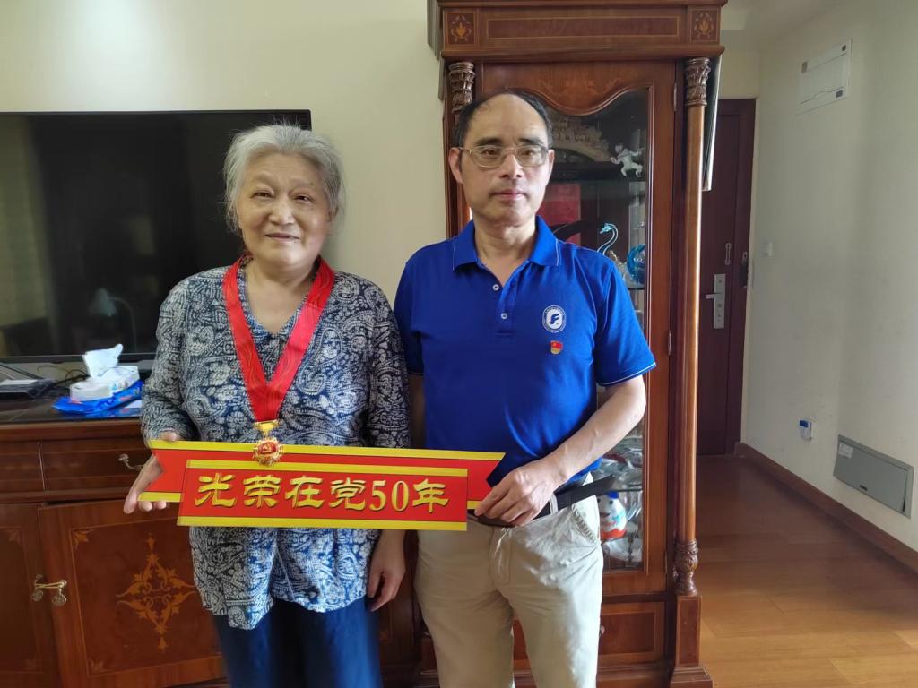 五十年栉风沐雨,半世纪春华秋实。在庆祝中国共产党成立101周年之际,为弘扬党的光荣传统和优良作风,6月29日,外国语学院党委书记邓志勇,副院长戴朝晖,党委委员、英语党总支书记张建琴来到党龄满50年的老党员家中走访慰问,为他们颁发“光荣在党50年”纪念章,并致以崇高敬意。