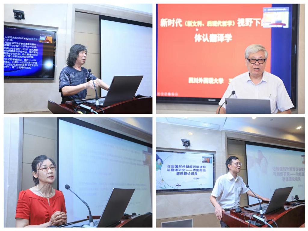 8月21日下午进行了4场主旨报告。中国英汉语比较研究会副会长、湘潭大学文卫平教授从双否律探讨汉语方言中的双重否定,用连续统对汉语方言中的双重否定现象进行统一描写和解释。中国英汉语比较研究会副会长、北京第二外国语学院“翔宇领军学者”、高级翻译学院院长司显柱教授从功能路径翻译理论视角出发,结合我国媒体与其他媒体英语新闻报道话语建构上的差异,探索我国对外新闻话语的翻译原则、策略与方法。新加坡教育部H2翻译课培训导师兼主任考官谭慧敏副教授的报告则基于外教视角,指出新时代中国翻译人才培养的根本问题,提出翻译学科建设应关注复合型和复语翻译人才的培养,注重政学产研的协作关系。中国英汉语比较研究会常务理事兼副秘书长、上海大学外国语学院院长尚新教授做了题为“蕴含关系与基于对比分析的翻译实证研究”的报告,认为在“就语言而为语言”的层面上,对比分析与翻译研究之间存在着逻辑上的蕴含关系,而就翻译策略来说,基于对比分析的翻译研究不能推导出语言之外的翻译策略。