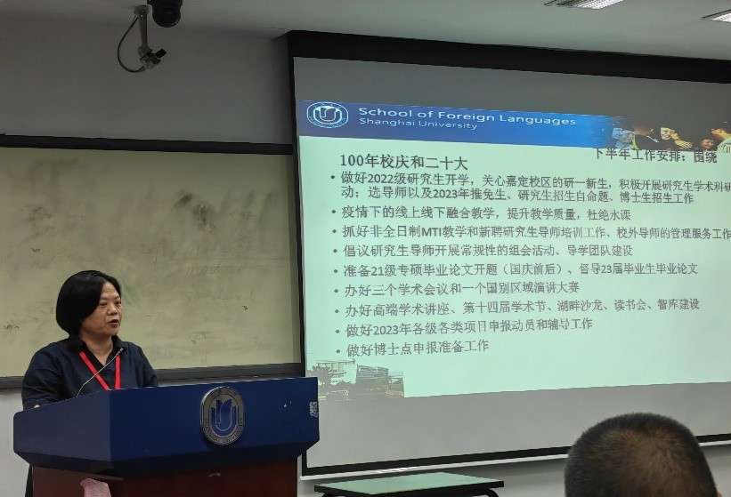 最后,学院副院长唐青叶对上半年研究生教育教学和科研工作进行了梳理。上半年研究生教育教学经历了一系列调整和改革,包括毕业生云端答辩、2022级新生培养方案的修订、与上海科技创新资源数据中心共建“上海大学MTI产教融合基地”等。科研工作方面,组织科研项目申报,举办各类学术讲座、学术会议和沙龙活动,从高水平论文、成果的发表来看,相关工作仍需加强。下半年将积极开展研究生学术科研活动,抓好非全日制MTI教学,办好学术会议以及做好博士点申报准备工作。