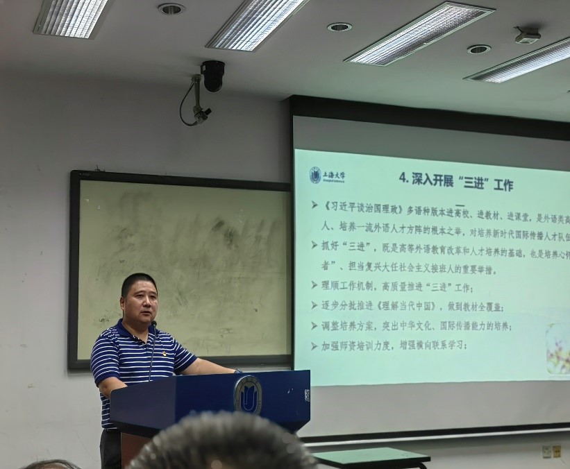 9月9日,外国语学院教职工大会在校本部J楼102举行。外国语学院党政领导班子成员及全院教职工出席此次会议。会议由院长尚新主持。