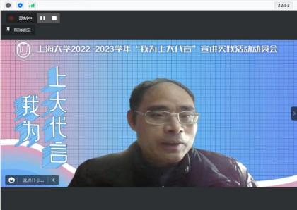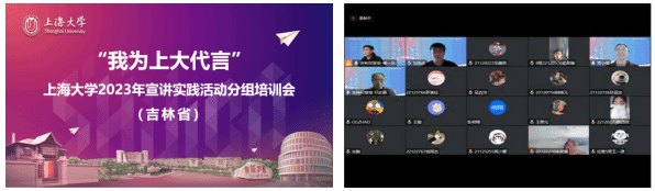 2022年12月11日下午2点,上海大学吉林招宣组在通过腾讯会议方式线上举办2023年“我为上大代言”宣讲实践活动吉林省专场培训会。本次活动是上海大学为搭建高中与中学的互动平台,讲述在校师生讲述上大成长故事,增强学生社会实践能力,学校面向在校师生开展的以“我为上大代言”为主题的寒假社会实践活动。吉林招宣组组长、外国语学院党委书记邓志勇,吉林招宣组副组长、外国语学院党委副书记、副院长贾小琴,吉林招宣组成员罗小春、宋勤、章健以及本次报名参加宣讲实践活动的吉林省和我组上海市目标中学20余名同学共同参与本次活动,本次活动由吉林招宣组联络员崔一冰主持。
