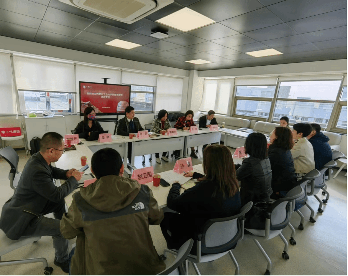 2023年3月16日上午,内蒙古工业大学外国语学院院长董君一行来访我院,双方在C501会议室进行了交流探讨。会议由院长尚新主持,副院长唐青叶、英语系教授傅敬民、英语系副主任龚萍、大学外语教学部副主任吴羊、MTI教育中心副主任花亮、院办主任郑醒芝等出席了会议。