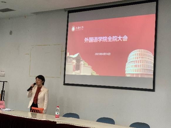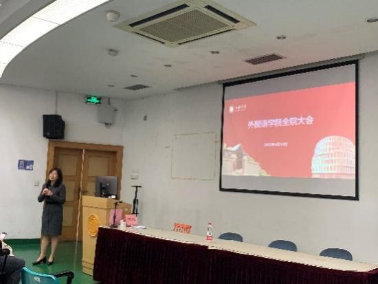 4月14日下午,外国语学院全体教职工大会在宝山校区J101顺利举行,学院领导班子、全体教职工参加了本次大会。