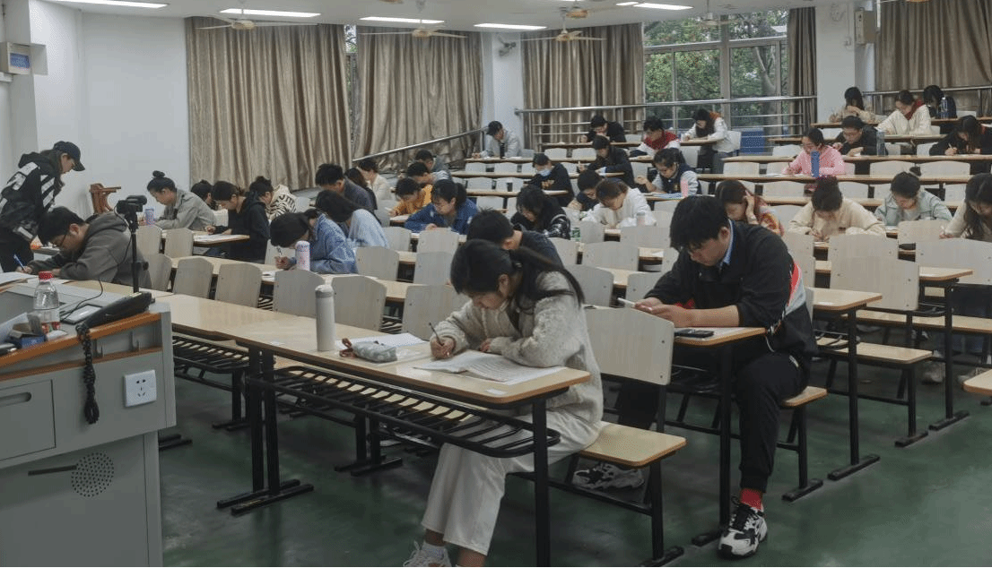 竞赛当日,参赛选手于8:45前进入考场,监考老师宣读比赛注意事项、分发试卷和答题纸;比赛期间,参赛选手认真审题,争分夺秒。