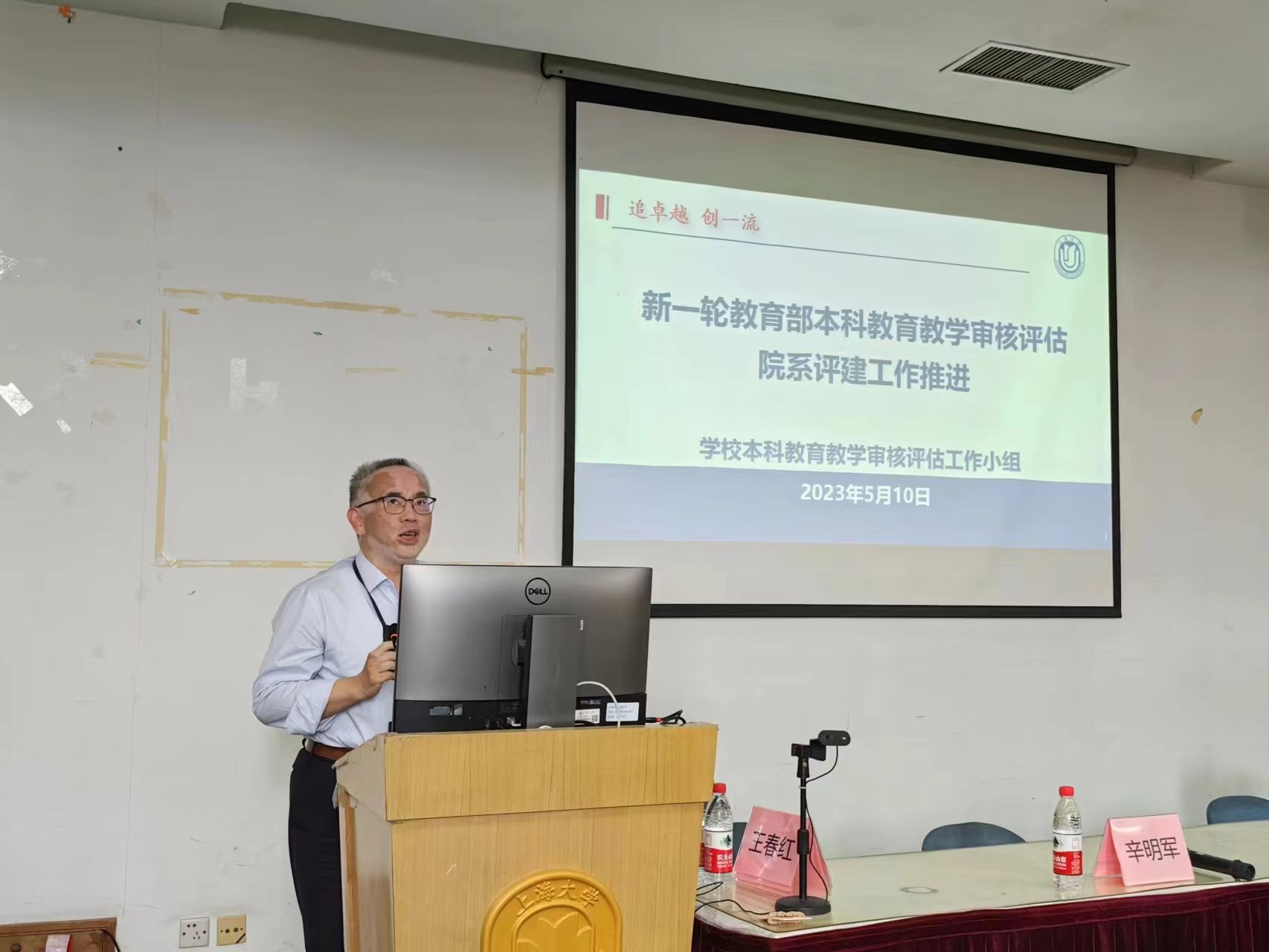 专题教育学习会结束后,学院邀请教务部副部长、教育质量监控与评估中心和教师教学发展中心辛明军主任为学院教师介绍上海大学本科教育教学审核评估工作实施方案。辛老师从“分类与内容、组织与领导、任务与安排”三大板块对本科审核评估工作的流程、重点、难点做了非常详尽的介绍和指导。辛老师结合外国语学院的具体实际,特别指出在实际操作中容易被忽视的事项并给予重点指导。