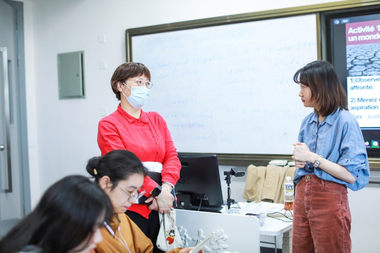 外国语学院举办法语“理解当代中国”教材公开课,这是学校推进《习近平谈治国理政》多语种版本进高校、进教材、进课堂,立德树人、培养一流外语人才方阵的重要措施,也是上海大学“戴朝晖课程思政名师工作室”推进外语课程思政高质量建设的落地举措,更是法语系继青年教师向维维老师成功举办“红课”公开课后,在探索多语种“理解当代中国”教材与课程深度融合的又一次成果展示。