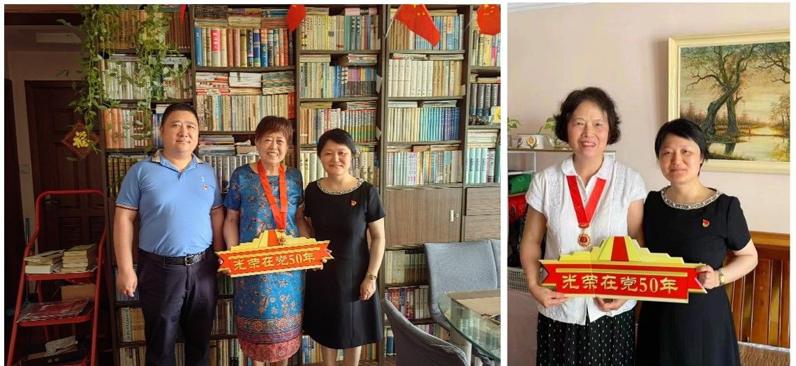 五十年光荣在党,五十载初心如磐。在庆祝中国共产党成立102周年之际,为弘扬党的光荣传统和优良作风,外国语学院党委书记吴蔚、副院长戴朝晖来到党龄满50年的老党员家中走访慰问,颁发“光荣在党50年”纪念章,并致以崇高敬意。