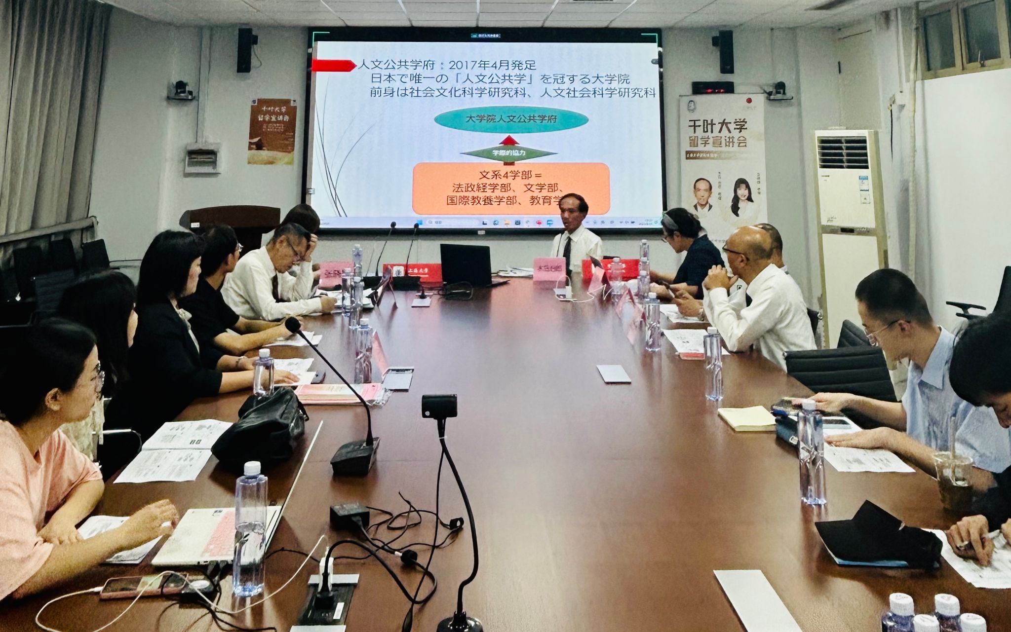 宣讲会上,千叶大学人文公共学府运营委员水岛治郎教授首先介绍了千叶大学的地理位置、教育理念和研究环境。千叶大学作为日本东京首都圈的两所综合国立大学之一,地理位置优越,交通便捷。随后重点介绍了人文公共学府的专业设置及报考信息。千叶大学人文公共学府旨在通过多种专业课程培养兼具专业知识和创造力的国际化人才,其前身是大学院人文社会科学研究科,也是日本唯一一所以“人文公共学府”命名的大学院。其博士前期课程(修士)有2个专攻——人文科学专攻、公共社会科学专攻,并分别下设若干专业方向。