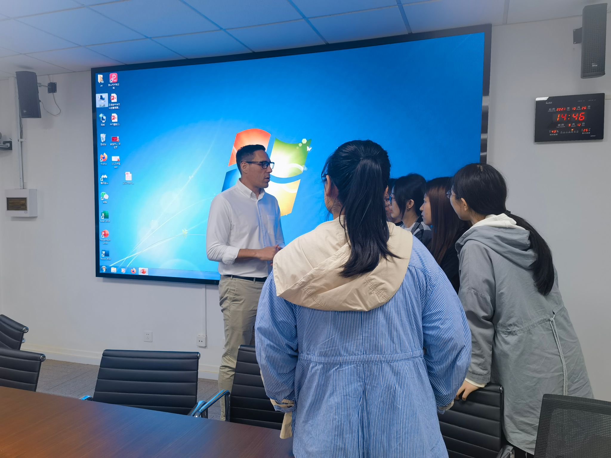首先尚新院长致辞,对Pfaender院长表示欢迎,并介绍了其学术背景和科研建树。在讲座中,Pfaender院长首先介绍了中欧学院和自身的工作,随后结合个人经历,指出在目前的工程师中外合作培养模式下,在教授知识、技术以及教授语言之间存在着一种张力关系,并且剖析了出现这种现象的原因。随后,Pfaender院长分析了语言的三个作用,指出学习语言不只是为了取得语言证书和达成交流,更是为了培养各方面的素养,尤其是跨文化能力。他从语言能力、文化符码、社会惯例等方面解读了何为跨文化能力,并用精美的图标和生动的案例举例,比较了中国、法国和英美之间的文化差异。