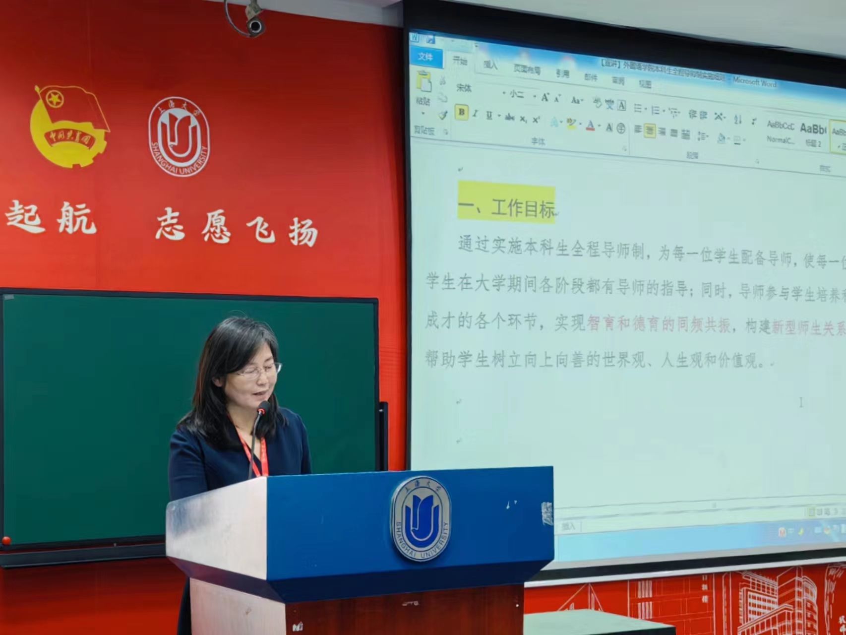 为落实立德树人根本任务,进一步加强师德师风月建设,深化推进本科生全程导师制工作,助力学生成长成才,11月3日下午,外国语学院全程导师工作推进会于宝山校区J102召开,外国语学院党政领导班子、各系部主任、全体全程导师和本科生辅导员出席本次会议。会议由外国语学院党委书记吴蔚主持。