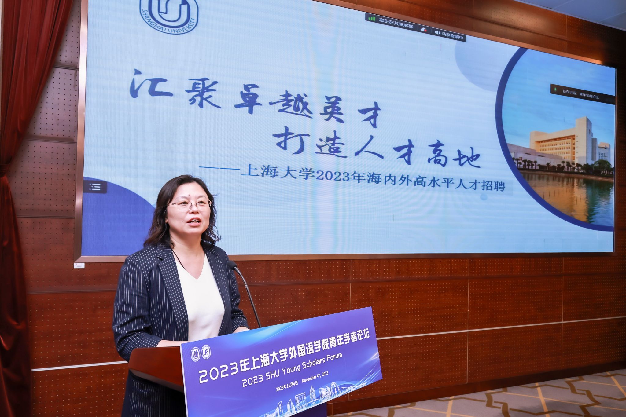 上海大学党委副书记欧阳华致欢迎词,对来自世界各地的专家、优秀青年学者表示热烈欢迎,并立足党的二十大报告中关于科技、人才和创新的重要论述,详细介绍了上海大学的整体情况及上海大学外国语学院的基本情况、学科建设成果以及未来发展规划;他鼓励青年学者将科学研究和人才培养相结合,提升社会服务与文化传承创新水平,探索新时代外语学科发展新路径,立足上海、主动作为,为中外文明交流互鉴、加快推动构建人类命运共同体做出积极贡献。欧阳书记表示,上海大学诚挚邀请更多海内外优秀青年学者加盟外国语学院,在新时代、新征程中携手共进,共同推动高等教育事业的可持续发展。