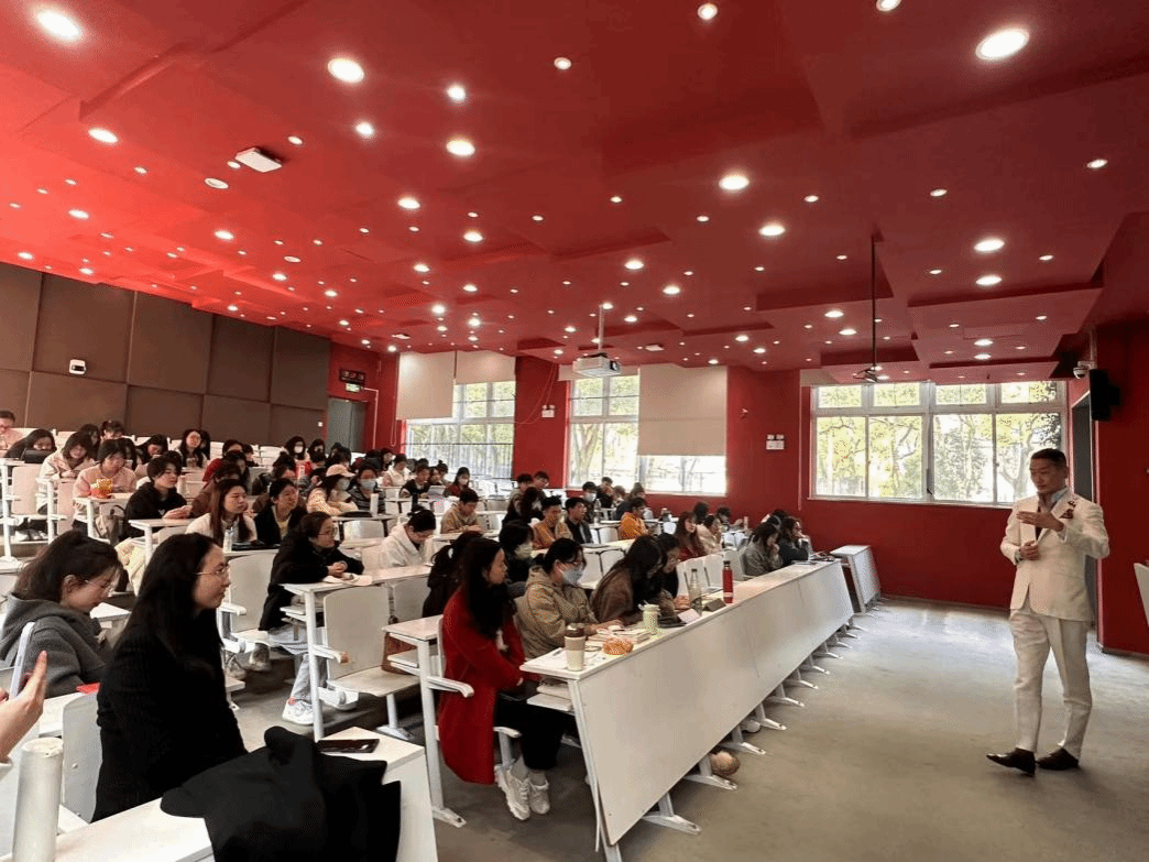讲座伊始,郑志晖先生以轻松诙谐的语调为学生们讲述了他从马来西亚到美国的求学经历和从新加坡到中国就职、创业的精彩经历。正如他激励同学们要勇于尝试、勇于发现自己一般,郑先生分享了他从少时学医到经商,后开始创办企业,虽一波三折,却始终勇往直前的故事。作为三代华裔,郑志晖先生始终有一颗中国心,不忘自己的中国魂。从在新加坡创业,到只身来到中国,经历了私企、国企、到个人创业并成功上市,以及在疫情期间的跨国经商奇遇,如今52岁的他仍认为自己正当年,并进军此前从未尝试过的饮料行业。同时,他也告诉同学们不要被年龄PUA,要积极挑战新事物。郑先生的从商经历,宛如一场欢畅淋漓的商界冒险记,展现了他的国际视野,也开阔了同学们的眼界,使大家近距离领略到经商的妙趣。