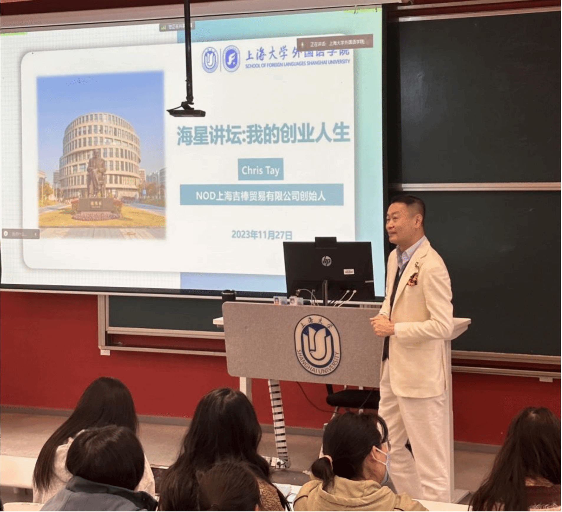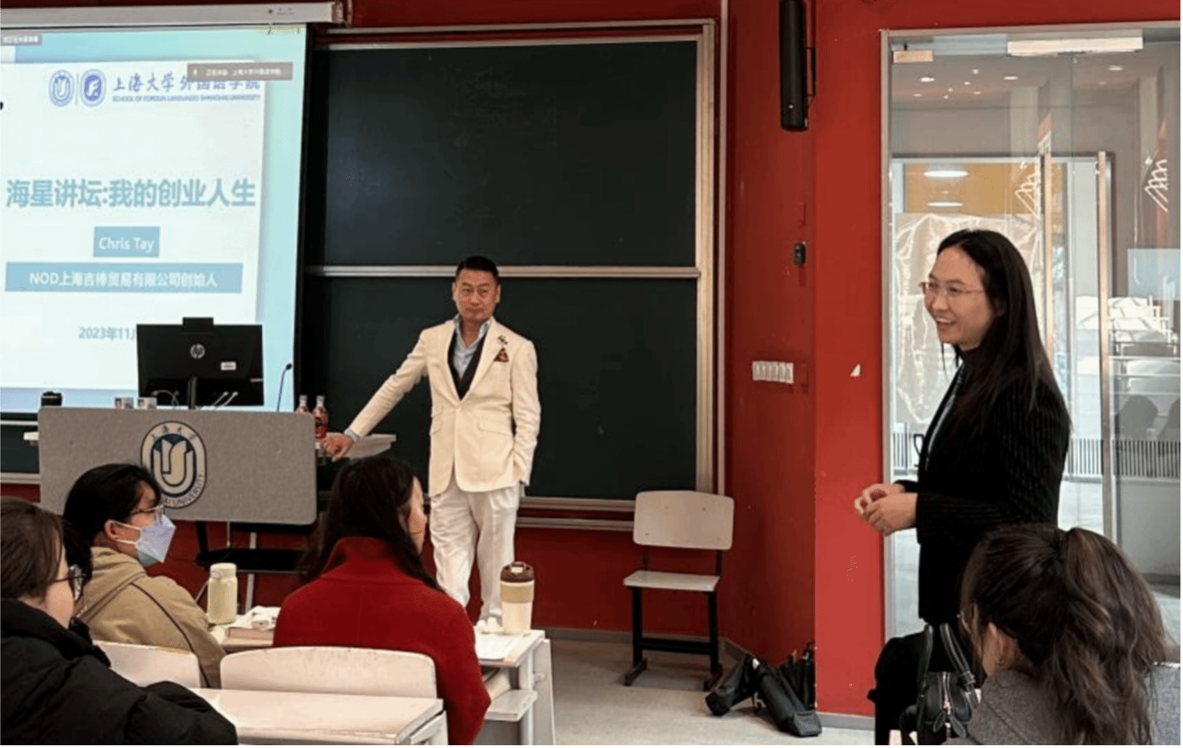2023年11月27日上午,外国语学院海星讲坛在上海大学嘉定校区第二教学楼112教室和线上同时召开。此次讲座邀请到了上海吉棒贸易公司创始人郑志晖先生,与师生们分享自己的创业经历和人生故事。外国语学院党委副书记、副院长贾小琴老师以及外国语学院研究生参加了本次活动。