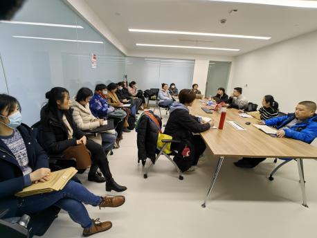 随后,戴院长作具体工作部署,他指出,一是要进一步思考如何利用AI赋能教学,充分发挥A级团队活力;二是要提高学术英语教学的质量和挑战度,进行个性化教学和研究,凸显亮点;三是要利用科大讯飞技术,提高对学生听说能力的要求,建设知识图谱,明确教学目标,为学校拔尖人才培养的目标做贡献。李晓媛主任希望教师们利用寒假思考如何将科大讯飞的功能融入协同教学。科大讯飞大客户总监赵望淙列席会议,并介绍了相关产品功能。