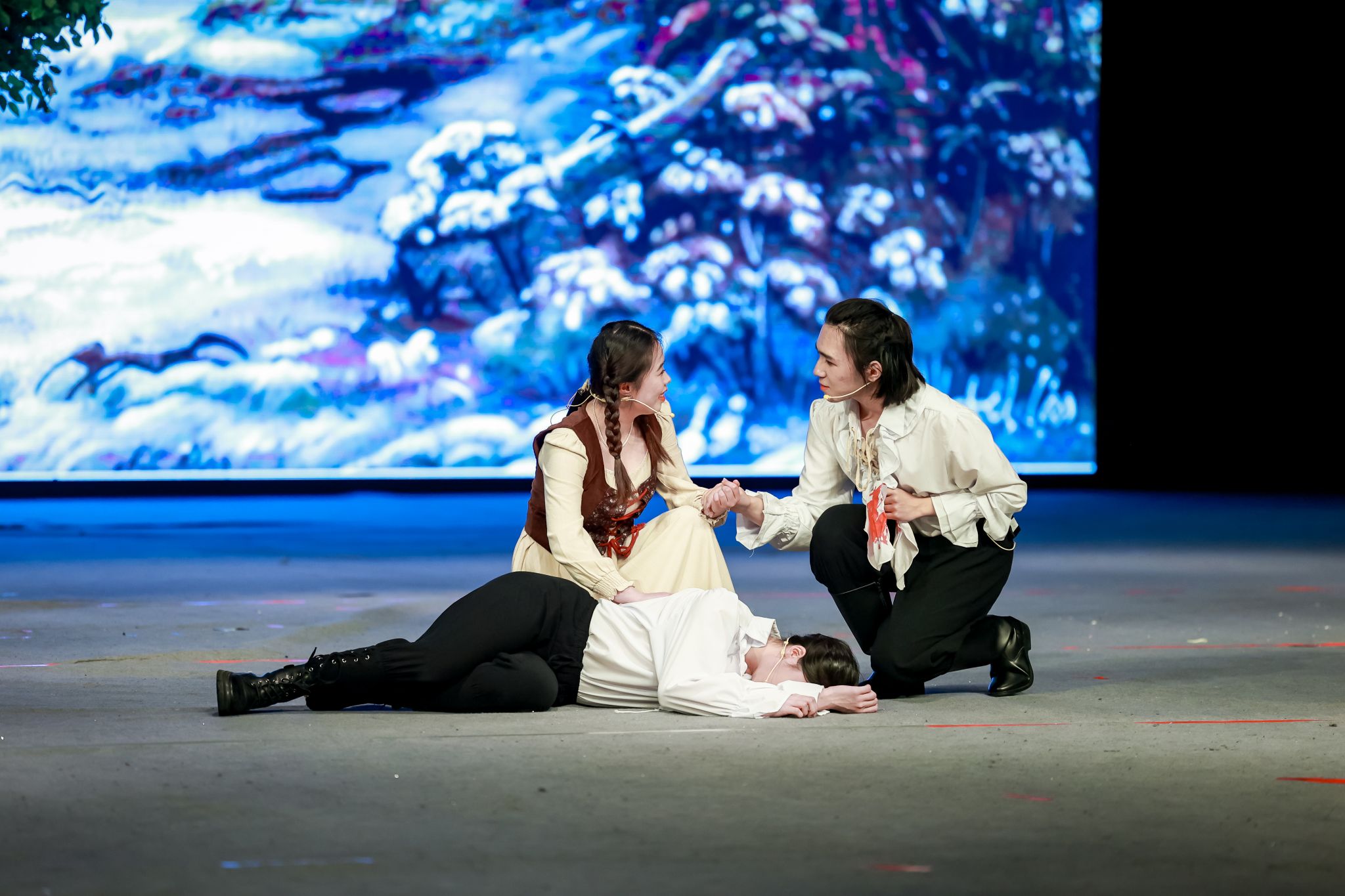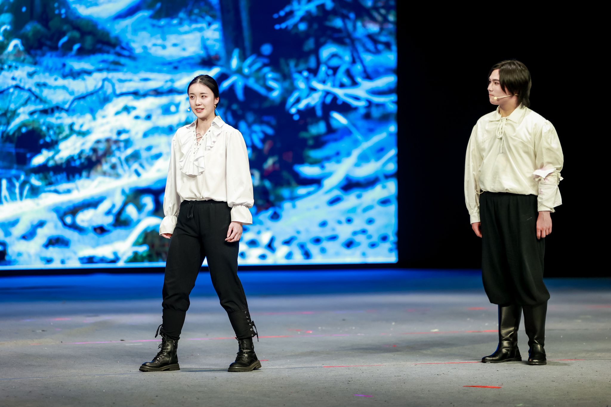 本次大戏自2023年12月开始筹备,由外国语学院学生骨干成立导演组具体负责演出编排,从剧本选择、剧本改编、演员遴选、中期排练直到最终成型,历经6个月的排练和打磨,集合了包括计算机工程与科学学院、管理学院、中欧工程技术、新闻与传播学院和社会学院在内诸多兄弟学院的智慧和力量。演员们自身认真研读剧本、透彻感悟,排练过程中有幸得到长期从事英国戏剧与影视研究上海戏剧学院俞建村教授,上海大学文学院英国文学研究与教学的张薇副教授和上海大学音乐学院从事舞蹈表演教学的还国志老师的专业指导,将文本意蕴、角色的情感和性格特色进行了恰如其分地舞台呈现。
